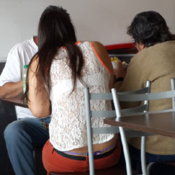 I was taking a steak in a fast food restaurant in Quito and suddenly this girl just a few tables in front of me having lunch with her parents
